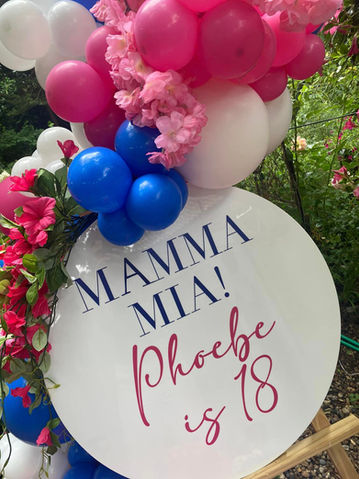 We also have a balloon ring, or large boards that can be personalised that can be decorated with balloons, a perfect backdrop for photos.